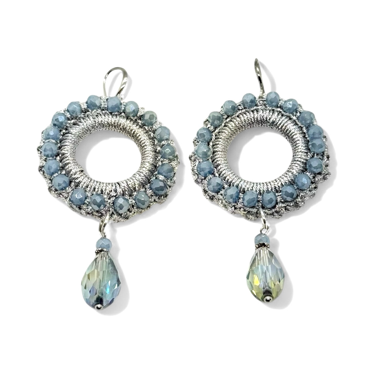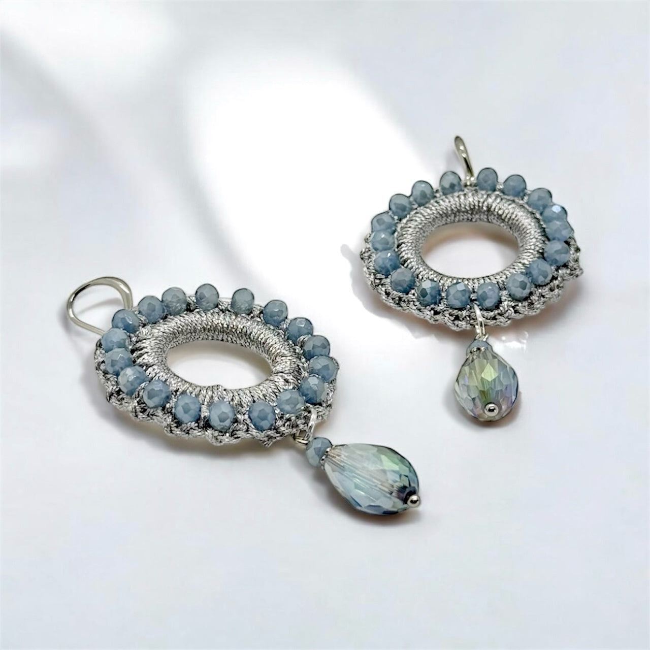 These elegant handmade earrings are carefully crocheted with sustainable thread, inspired by the crisp beauty of ice and the serene charm of winter. Their radiant ice-blue color evokes the sparkle of crystal ice.